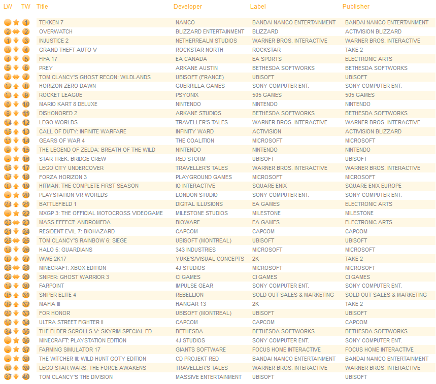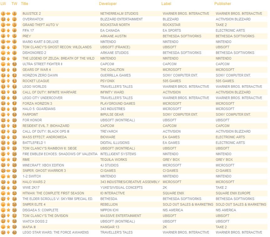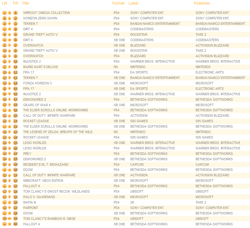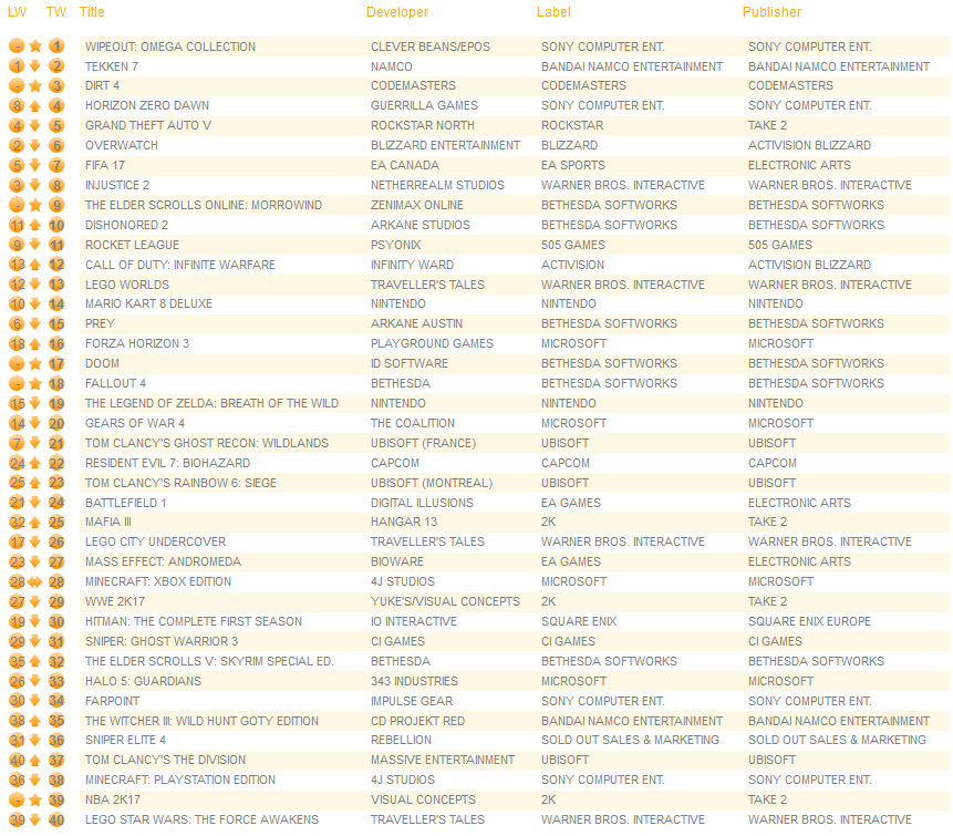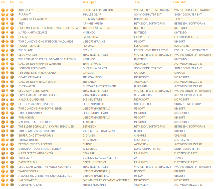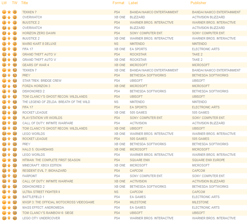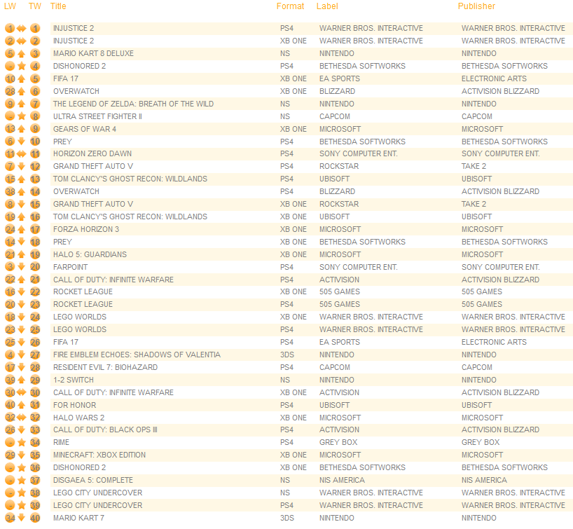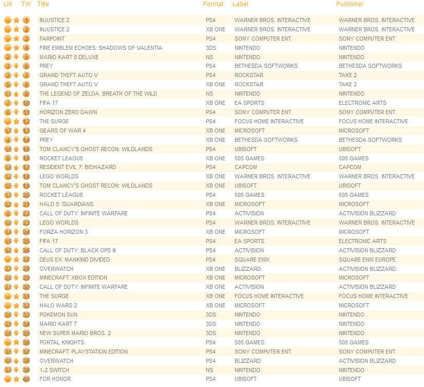 UK software sales (Week ending 06/05/2017) – Switch/Wii U/3DS charts