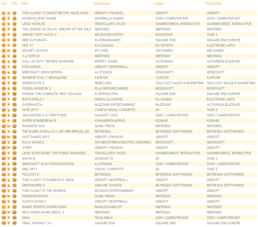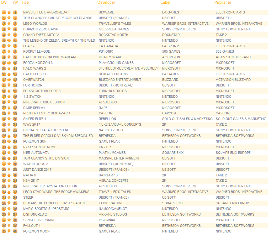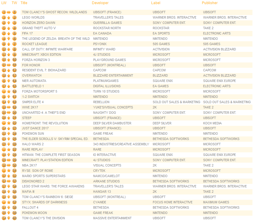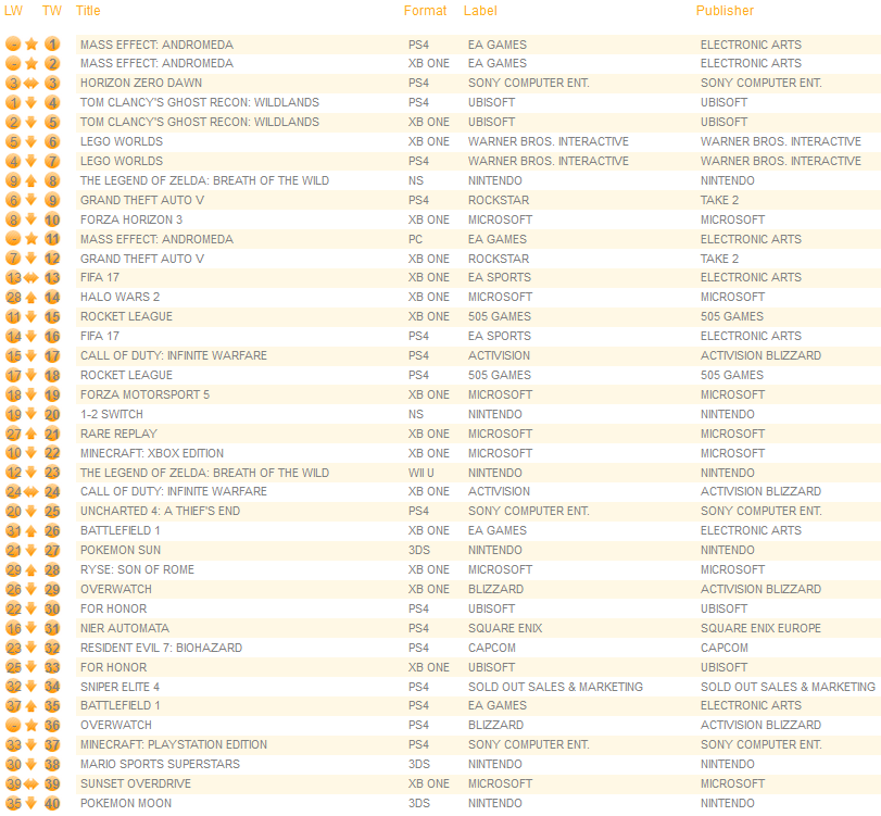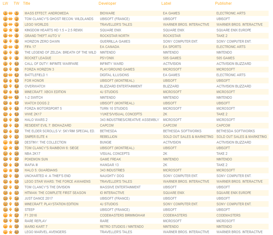 UK software sales (Week ending 03/11/2017) – Switch/Wii U/3DS charts