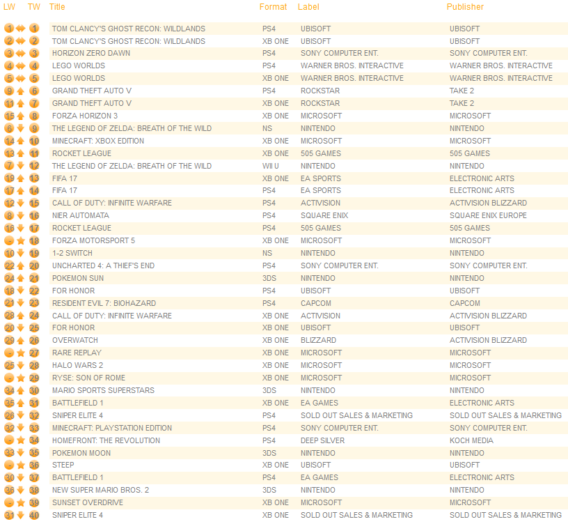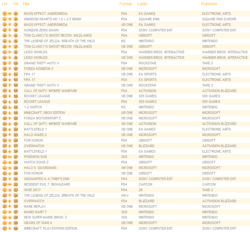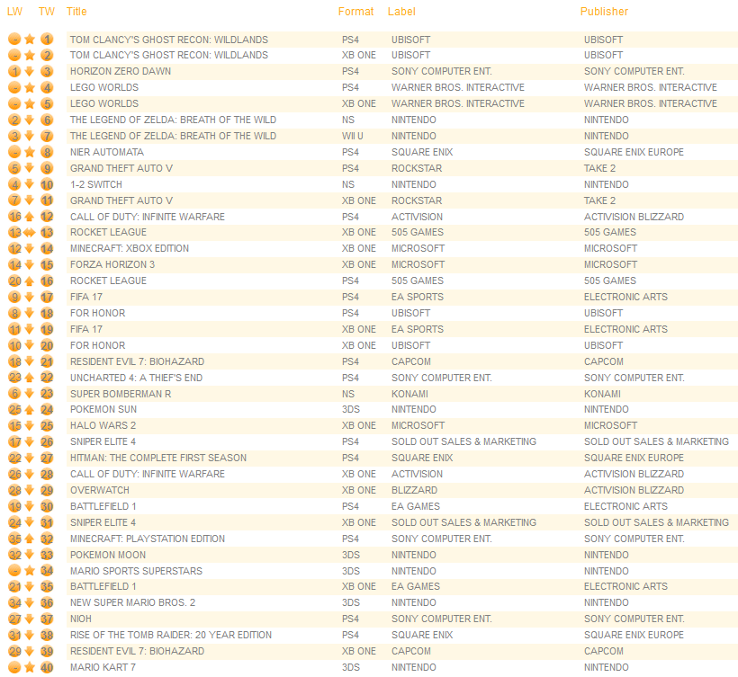UK software sales (Week ending 03/18/2017) – Switch/Wii U/3DS charts