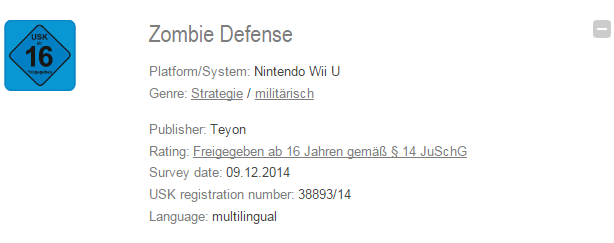 A listing on the USK confirms that Teyon is bringing “Zombie Defense” to Wii U. It seems to be a strategy game of some sort, though no other information is available at this time.