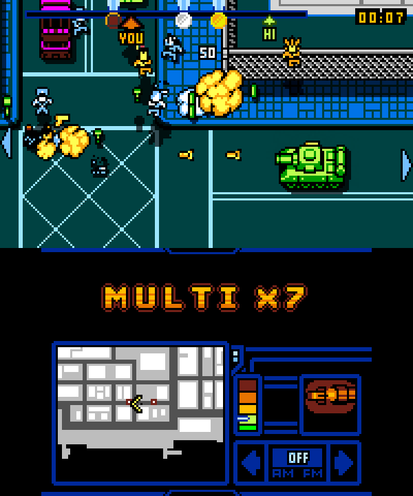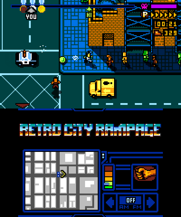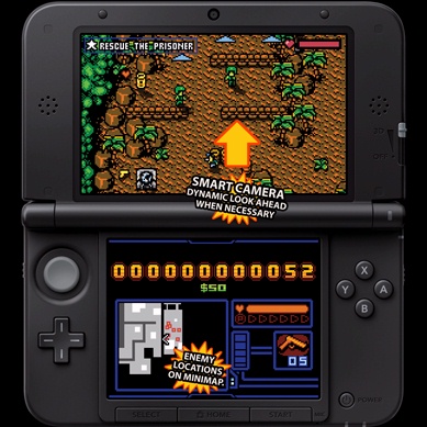 The official Retro City Rampage Twitter account has provided an update on the 3DS version of the game. It now contains a smart camera that looks ahead when necessary and shows the location of enemies on the mini-map.