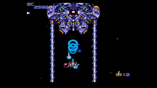 “Super Star Soldier is a classic, vertically scrolling shooting game. The Special Attack Squad, led by the Mother Brain, has launched an all-out invasion of the Earth. Take your small-scale fighter, the Neo Caesar, with its arsenal of 4 regular weapons and 2 special weapons, and send them back where they belong!”