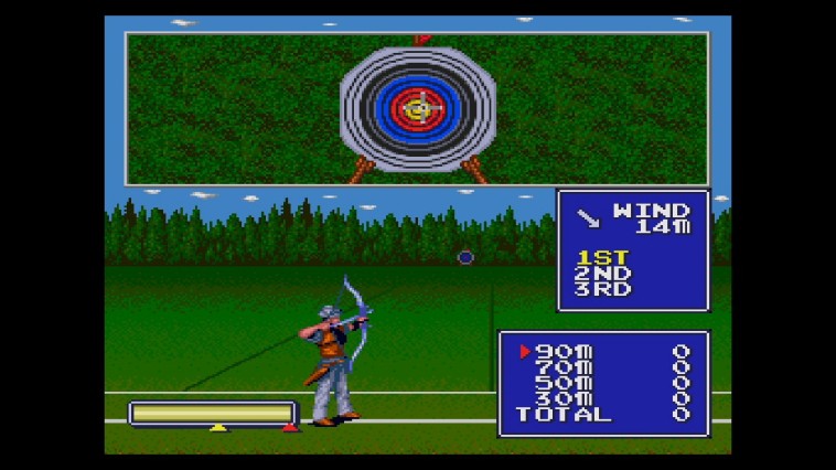 “Play through a total of 18 sport events in this action/sports title. Players compete in six categories of events that include shooting, archery, rowing, swimming and track and field.