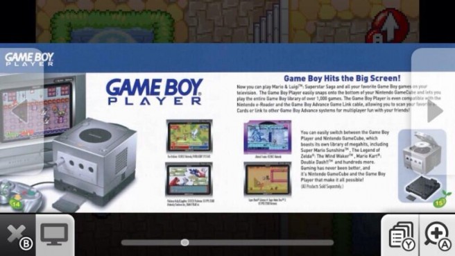 There’s a lot to like about the Game Boy Advance Virtual Console for Wii U. For instance, each game comes with the title’s original instruction manual. As shown above, this even includes old advertisements… like one for the Game Boy Player!