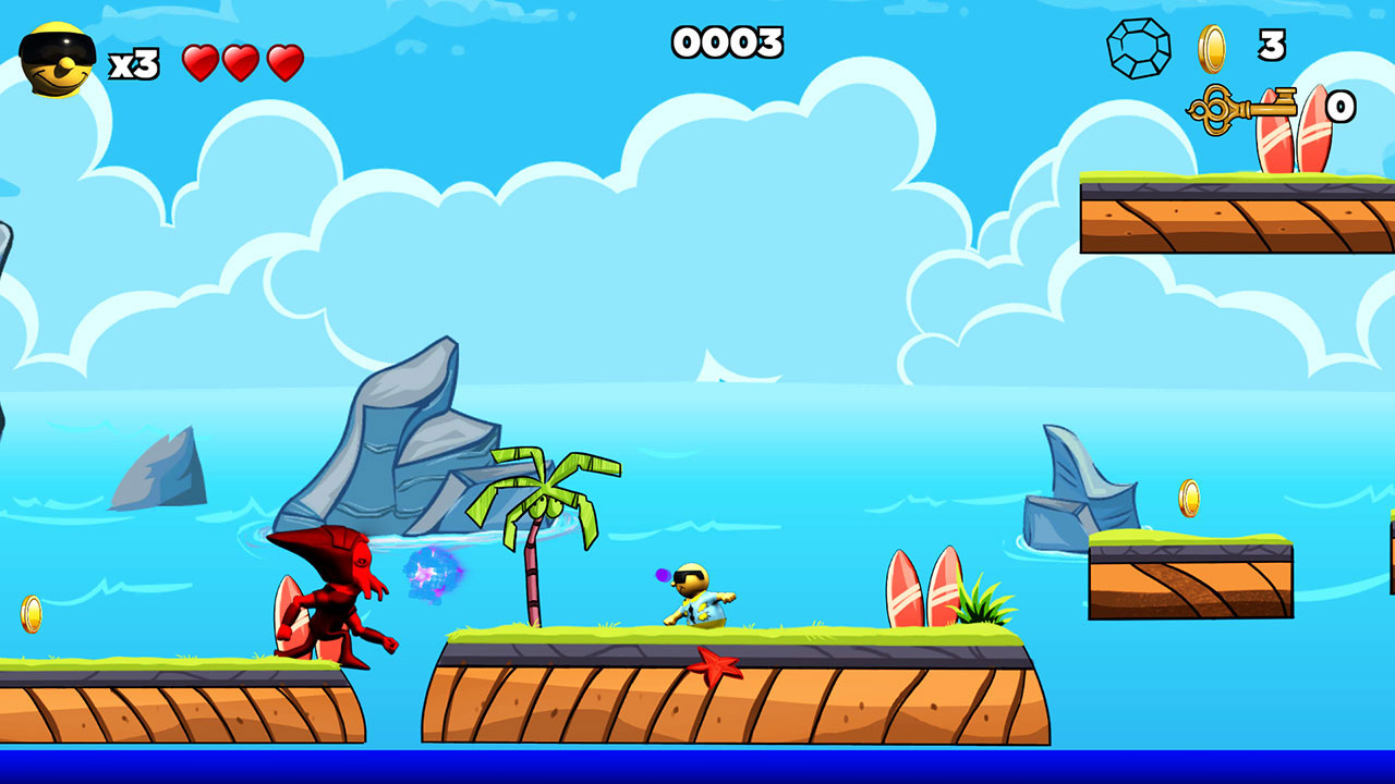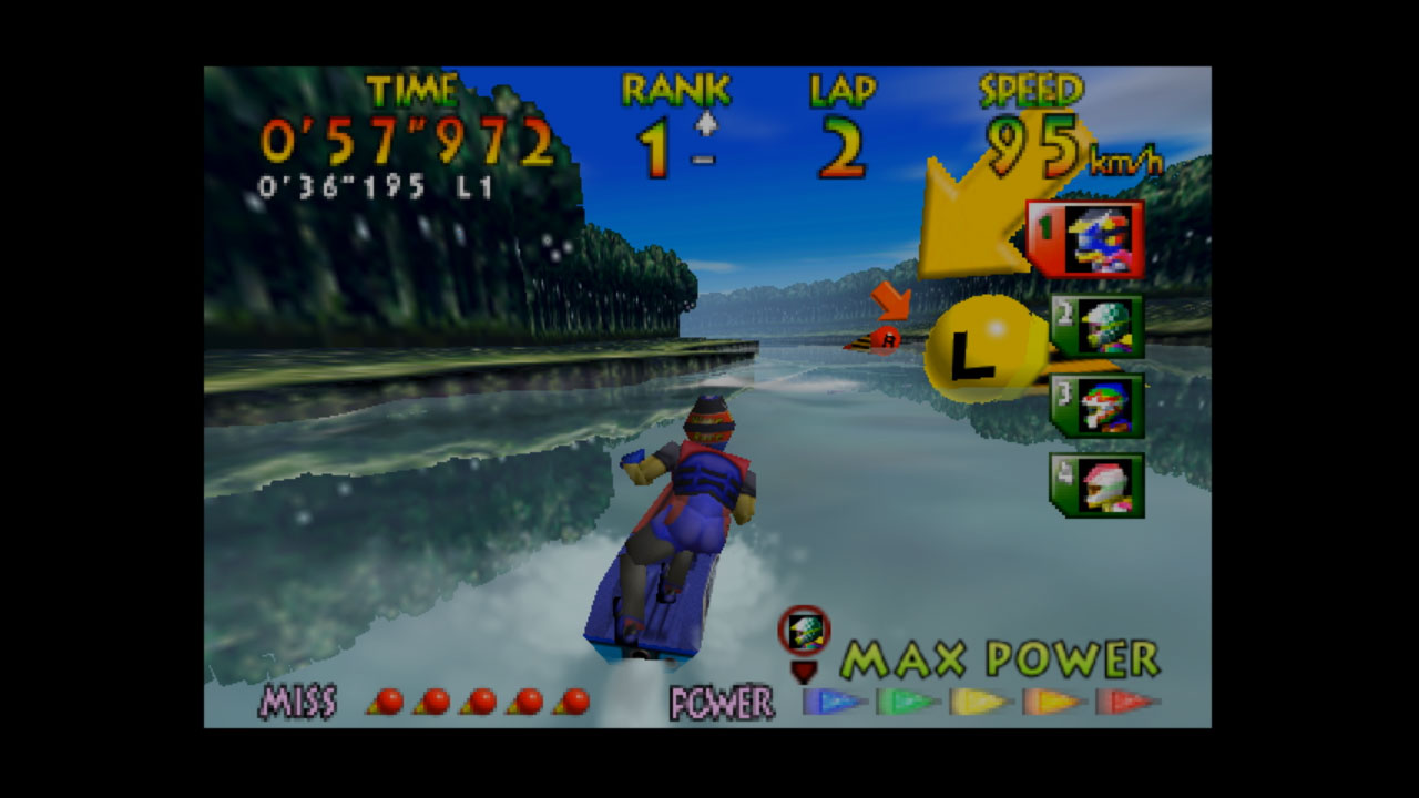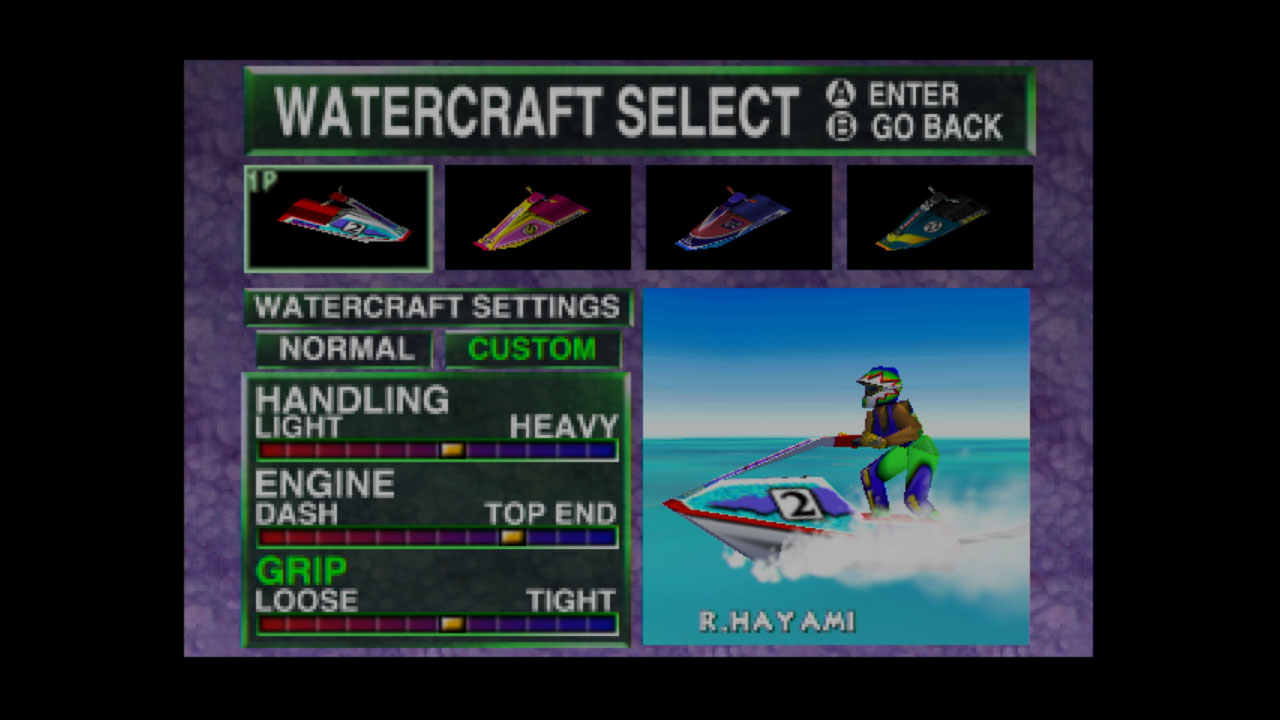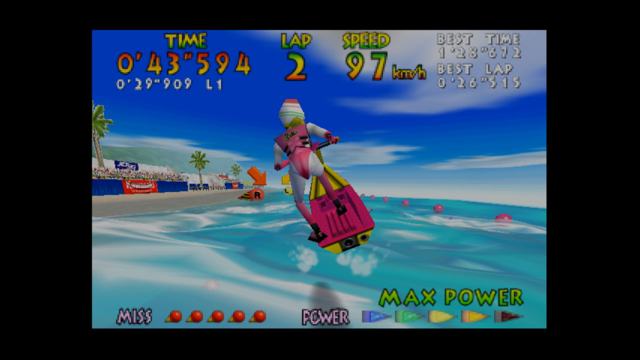 Take to the waves on your own personal watercraft!Choose one of four characters, each with his or her own unique abilities and style, and master the game’s excellent controls. Make your way through nine courses, each with its own challenges. If the ramps, mines, and hairpin turns aren’t enough, you’ll also have to deal with varying weather conditions that can make the water choppy or cover the course with fog. Take a break from racing to try the Stunt Mode. Polish your skills pulling off handstands, rolls, flips, and more!