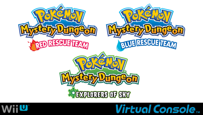 Three Pokemon Mystery Dungeon games are arriving on the North American Wii U Virtual Console this week. Today, Nintendo confirmed that Pokemon Mystery Dungeon: Red Rescue Team, Pokemon Mystery Dungeon: Blue Rescue Team, and Pokemon Mystery Dungeon: Explorers of Sky are all slated for Thursday.