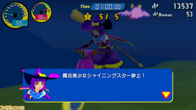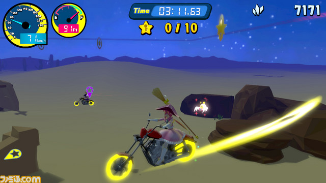 The game will also make use of Switch’s HD Rumble feature to simulate engine vibration, wind pressure, and impact. The vibration will change with each type of motorcycle. Stardust collected are used to purchase new Magical Bikes.