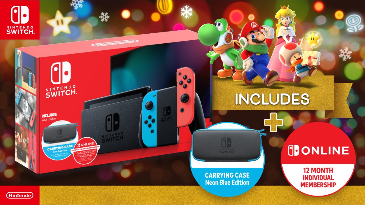 The big inclusion is a 12-month Nintendo Switch Online subscription. A carrying case is thrown in for good measure as well.