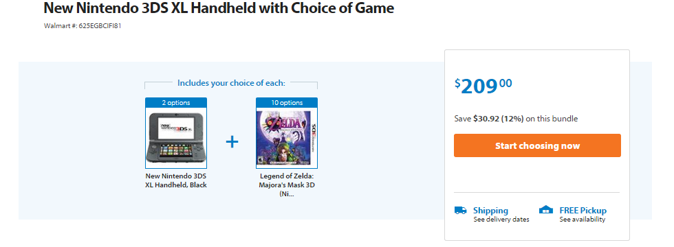 A New 3DS XL bundle has gone up over on Walmart. The retailer is selling the system with one game of choice for $209.
