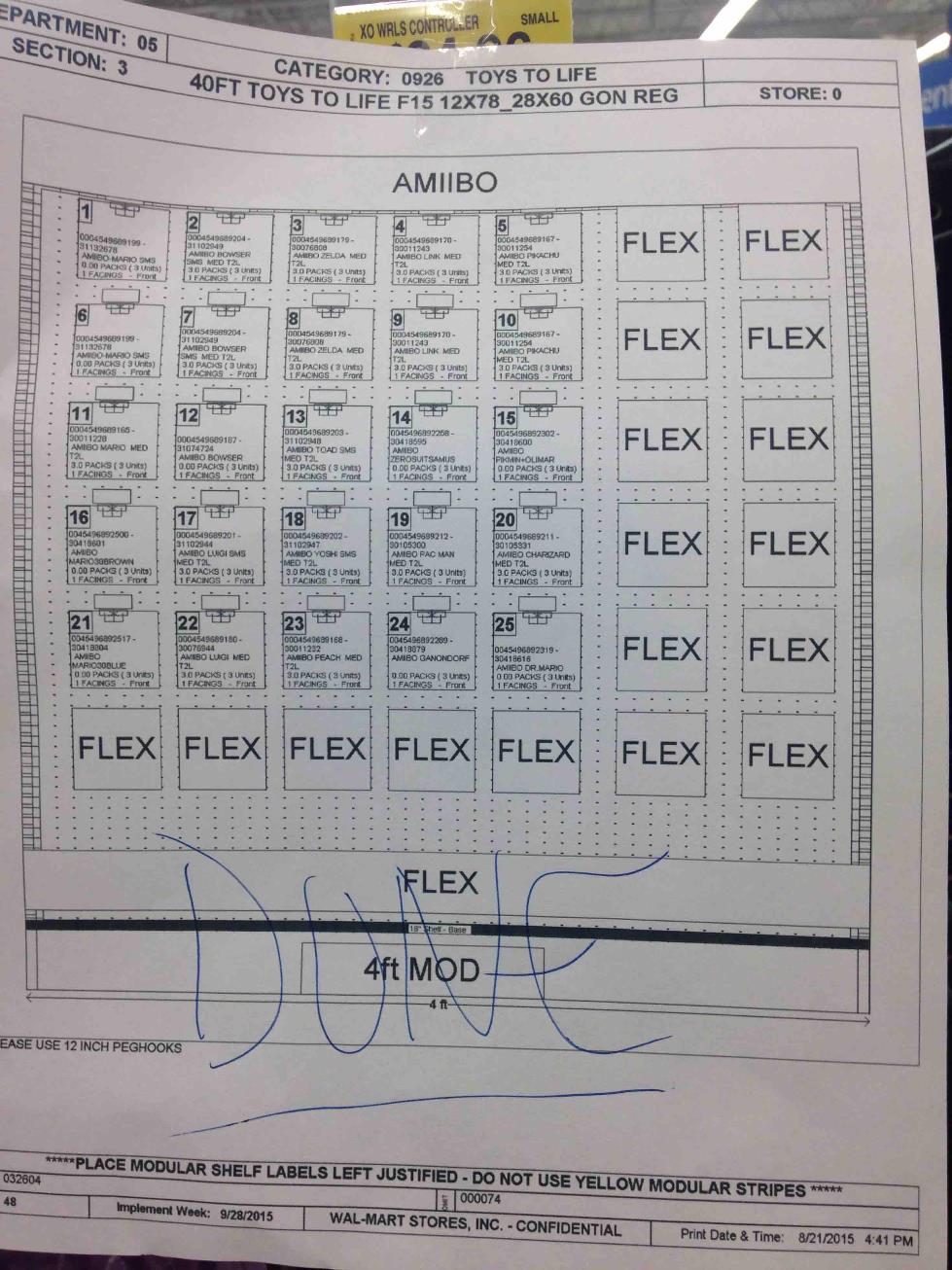 Last night, a Walmart Canada employee shared a planogram, which shows the 30th Anniversary Mario – Modern Color amiibo on the rack. This indicates that the figure will not be exclusive to the Super Mario Maker Wii U bundle… though now there’s speculation going around that the amiibo will only be sold at Walmart.