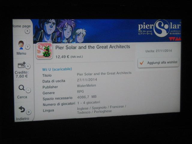 The European Wii U eShop is listing a November 27 release date for Pier Solar HD. It will be available or €12.49.