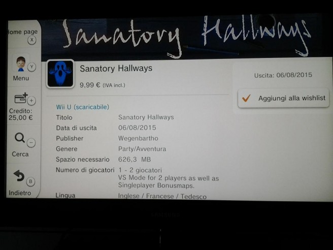 Sanatory Hallway is coming to the European Wii U eShop next week. For those who plan on downloading the game, keep in mind that the download is 329 MB.