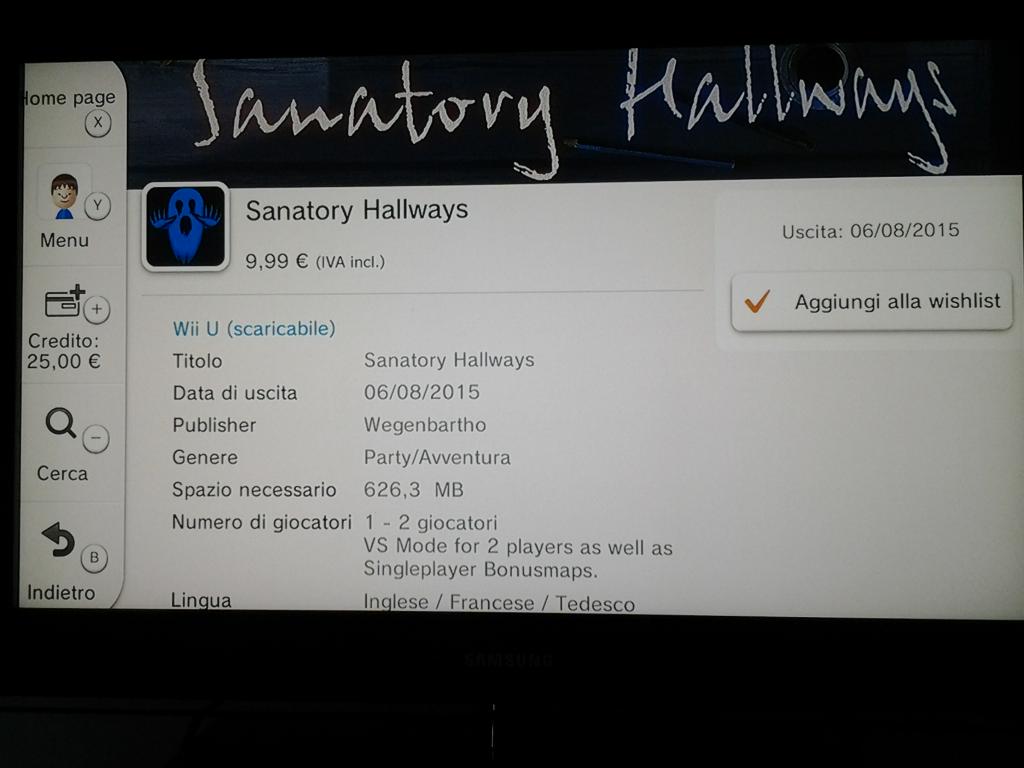 Wegenbartho is bringing Sanatory Hallways to the European Wii U eShop next week, according to a listing on the store. It should be available on August 6 for €9.99.