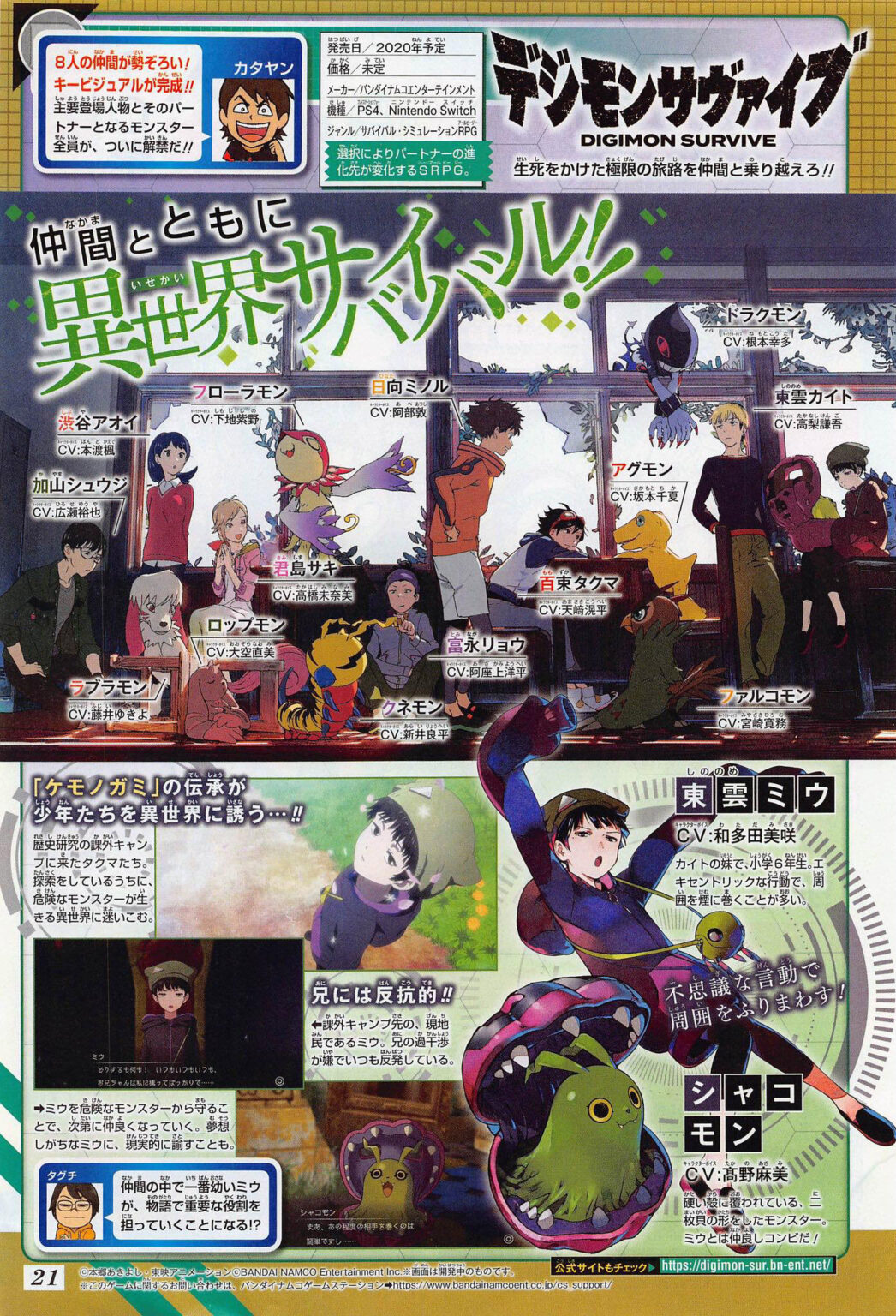This week’s Weekly Shonen Jump has revealed that two new characters, Miu Shinonome and Syakomon will be introduced in Digimon Survive.