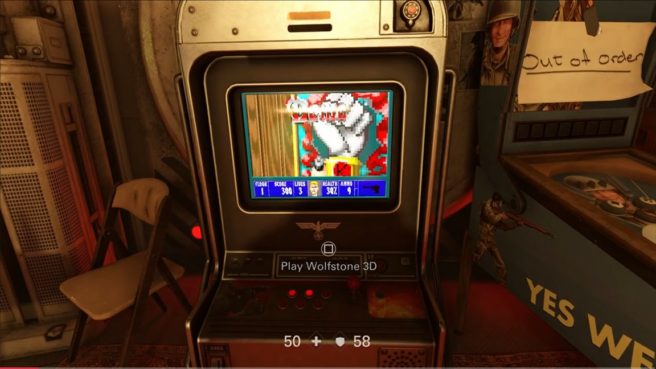 Wolfenstein II’s take on the game is “Wolfstone 3D”. You’ll find it located in Club Kreisau as its own arcade cabinet. But in this version, there are a number of differences, such as how you fight Kreisau “terrorists” instead of Nazis. Wolfstone 3D has six levels and a save game system.