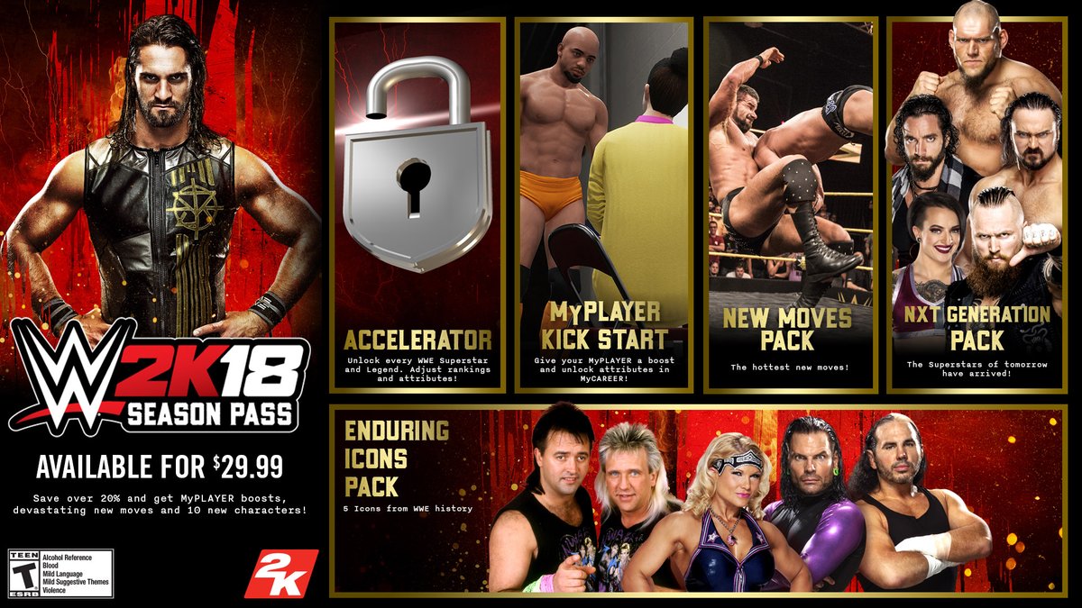 2K announced the full slate of DLC in the pipeline for WWE 2K18. Everything will be extended to Switch players, including a season pass.
