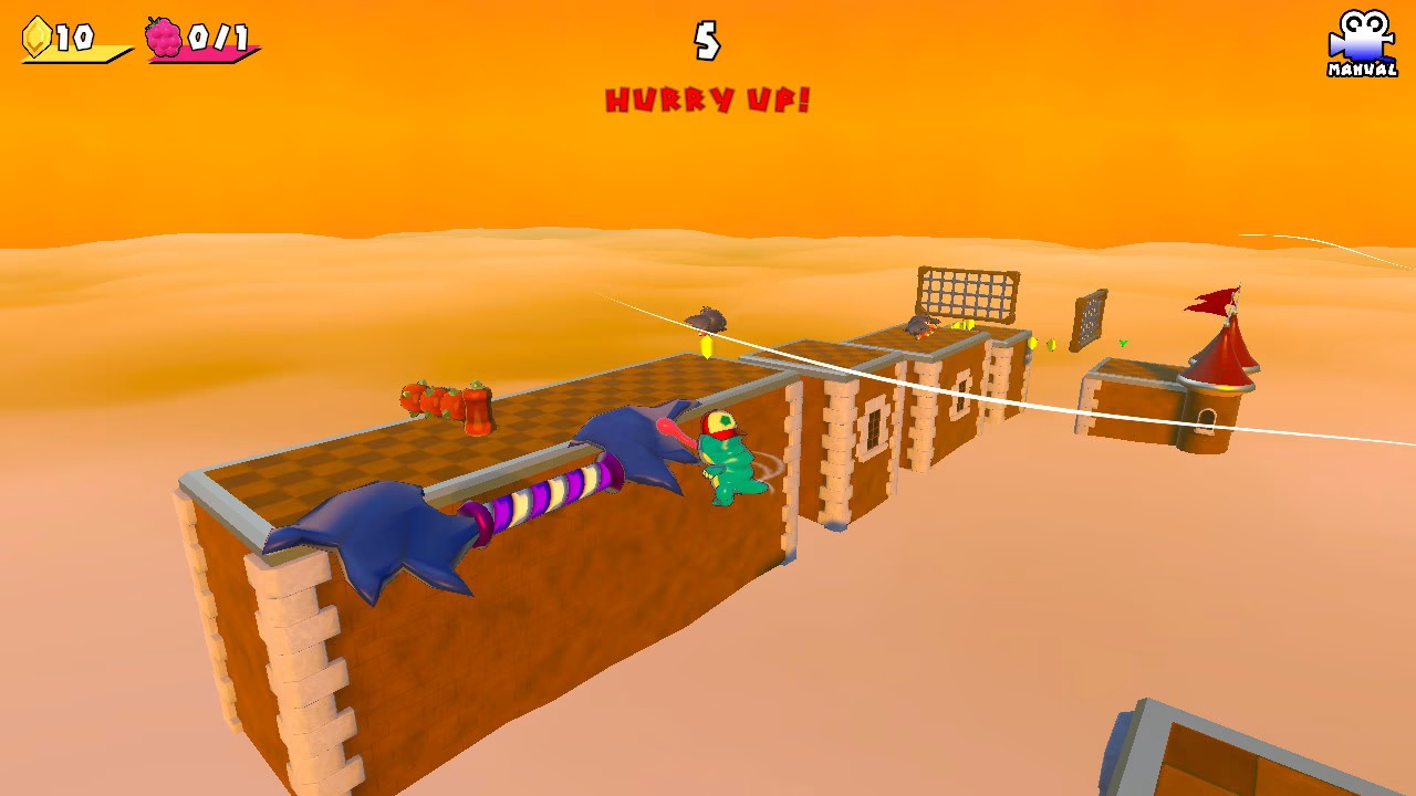 Super Sami Roll does have a story, and it begins with the wicked Albert VII kidnapping Sami’s friend Vera. To save her, players will need to explore the game’s colorful 3D world and uncover secrets by rolling, grappling, and jumping. Various locations are included such as green fields, deserts pyramids, oozing volcanoes, frigid ice lands, and more.