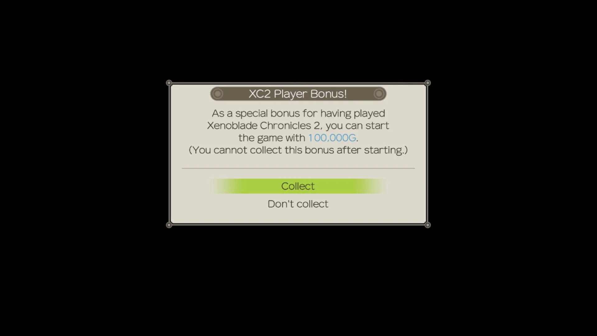Xenoblade Chronicles: Definitive Edition is rewarding players for having played Xenoblade Chronicles 2. When starting up the game for the first time, a notice will appear offering free 100,000G.