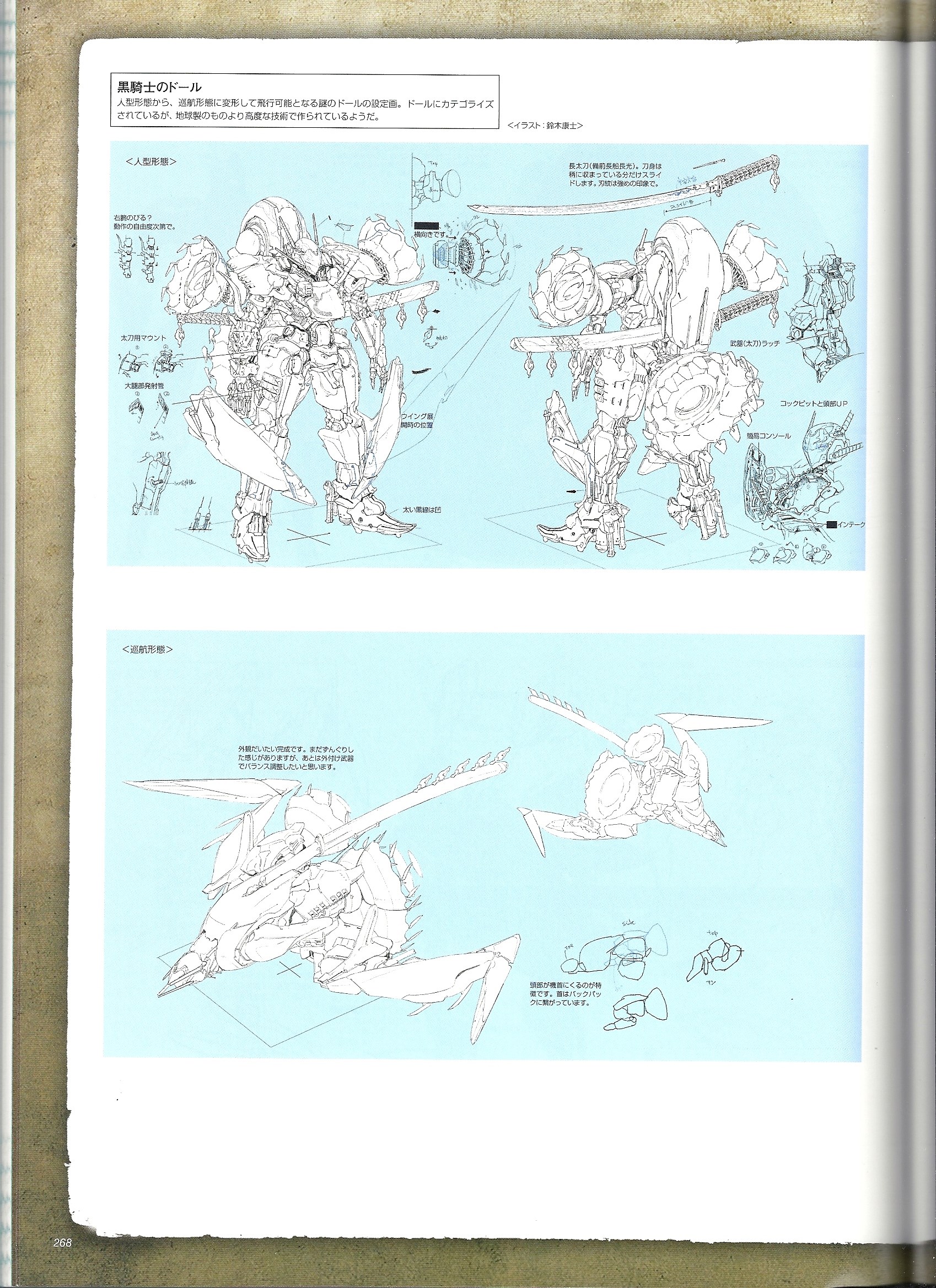 The 175mm model (1/48 scale) comes with the ability to transform from Skell / Doll form to vehicle form. Armaments include Sword, Machinegun, Grenade, Beamsaber, and Shield. It also comes with decals that can be placed on the model.