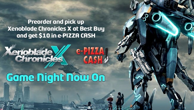 How’s this for a random pre-order offer? If you reserve Xenoblade Chronicles X at Best Buy – only the standard version, by the way – you’ll receive $10 in e-Pizza cash for use on XCXPizzaCash.com This is sort of like the gas credit offer for Mario Kart 8.