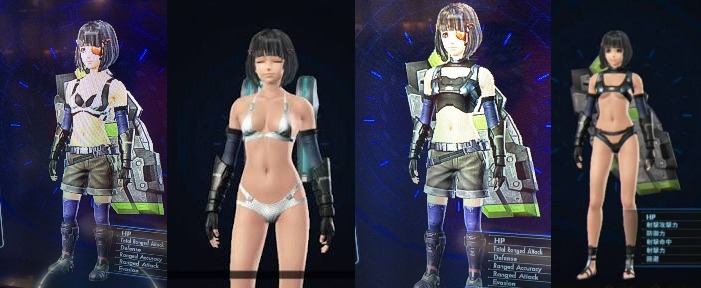 In the images above, the more-revealing outfits are from the Japanese version. The ones with less skin exposed are from the European (and presumably North American) version.