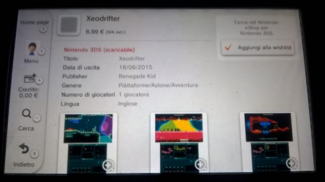 Last week, Renegade Kid said that it hopes to have Xeodrifter out in Europe on June 18. That date is now final. A listing for Xeodrifter on 3DS has gone up on the eShop, which comes with an official June 18 launch date. Xeodrifter will cost €8.99 in Europe.