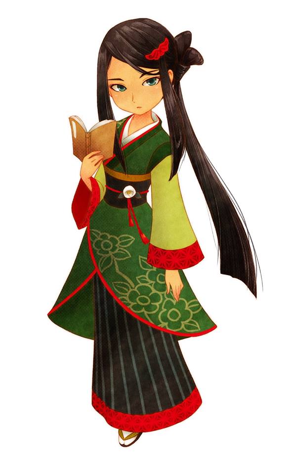 I teach basic learning, such as reading and writing, to children at a nearby schoolhouse. However, my place of birth is far from Tsuyukusa. My father is a scholar, and I received a classical education from a governess. This included ancient literature and poetry—of which I am fond—as well as painting and martial arts.