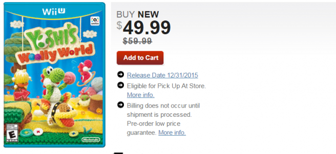 Update: Also Amazon – GameStop listing Yoshi’s Woolly World for $50