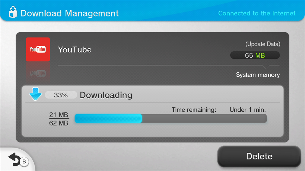 A new YouTube update is now available to download for Wii U. It’s not too big, as the download is under 100MB.