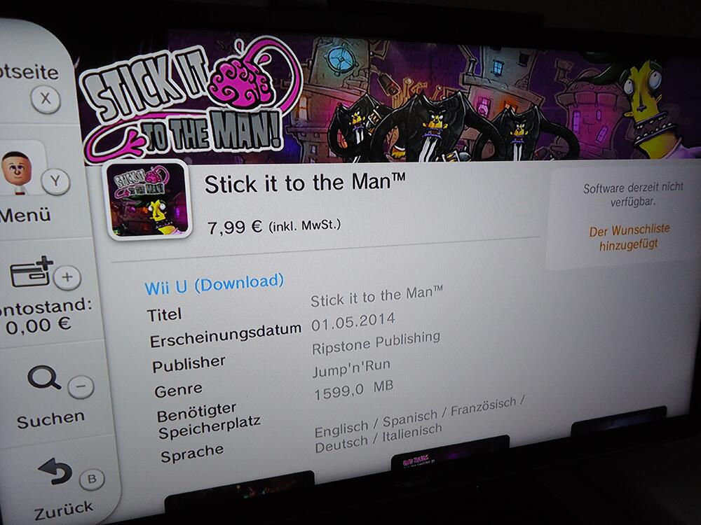 Stick it to the Man is one of two new games hitting the North American Wii U eShop today – the other being Abyss. Keep in mind that the download takes up about 1,100MB of space. Not too large of a game!