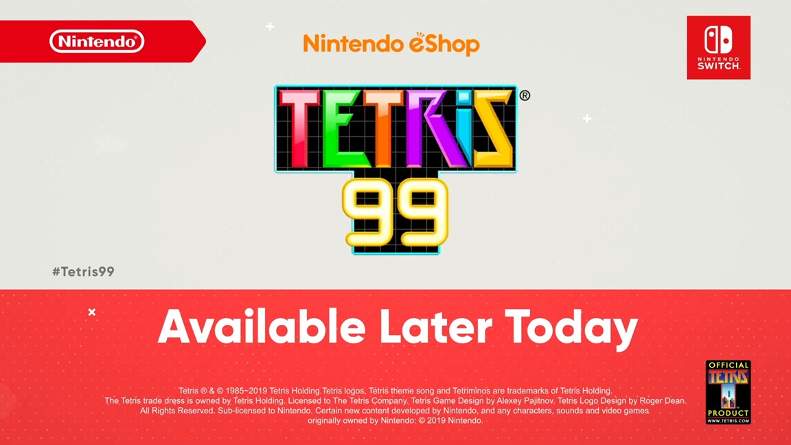 The free-to-play title Tetris 99 is coming to Switch… today. Nintendo announced the news during today’s Nintendo Direct presentation. As the name implies, you can battle against 99 other players.
