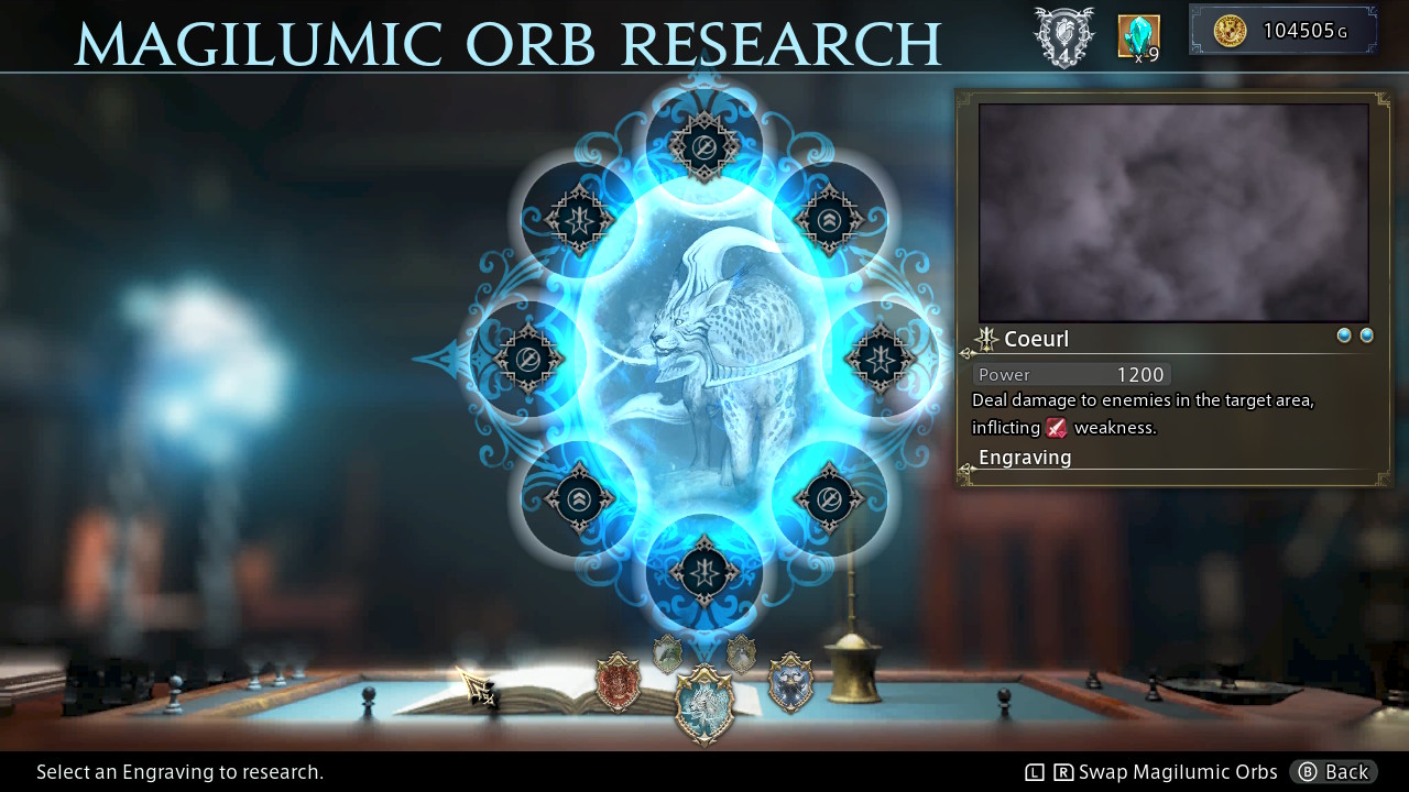Fenrir is the third Magilumic Orb you will acquire. Unlock the engravings that bestow Weakness and Delay as soon as you are able for additional utility, and then upgrade damage dealt. If you are using Fenrir to stall groups of enemies before they reach you, you may wish to consider upgrading its effect range once, although this is entirely optional and saving your resources may be a better choice.