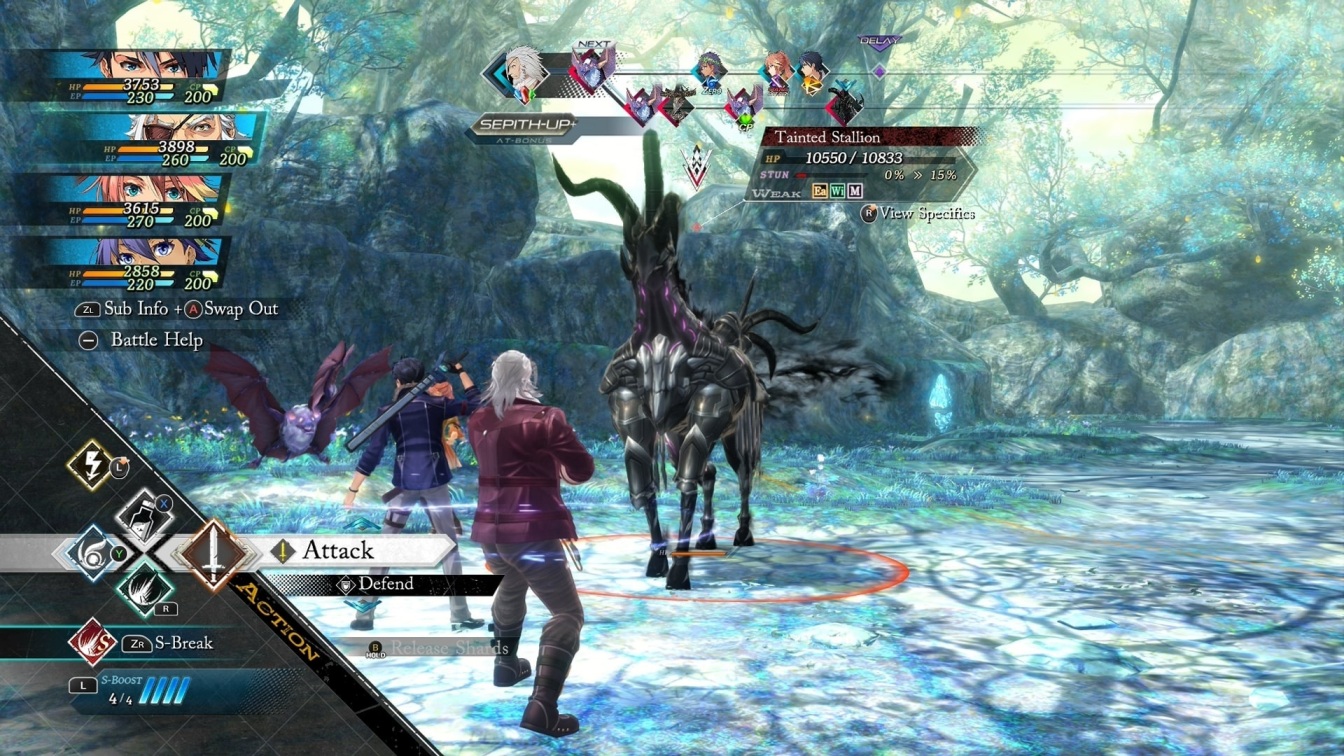 Combat in Trails Beyond the Horizon largely builds on the hybrid real-time/turn-based foundation established in recent entries, and while it doesn’t radically reinvent the system, it meaningfully refines it. The new BLTZ mechanic allows party members to chain additional hits onto attacks or amplify the damage of special moves, though in practice its impact feels fairly modest and rarely alters battle flow in a significant way. The real standout addition is the expanded Shard Command system, which functions similarly to Cold Steel’s Brave Orders but with greater flexibility. As shards accumulate during combat, they can be spent on powerful party-wide buffs, attacks, or utility effects, adding an extra layer of tactical decision-making. Commands like Lapis’s Noble Axe – capable of providing clutch, party-wide healing – often feel indispensable during tougher encounters, and the shift away from shards solely enhancing S-Crafts toward a broader set of strategic options gives battles more variety and reactive depth than in previous games.