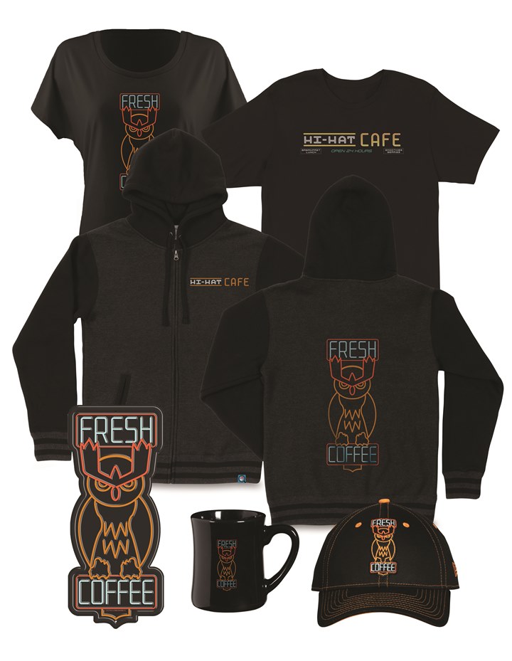 Hi-Hat Café Apparel and Accessories—Nodding to one of the most iconic locations in POKÉMON Detective Pikachu, this collection offers various items donning the Hi-Hat Café’s unique logo, including t-shirts, a hoodie, diner mug, and 9FORTY baseball cap by New Era.