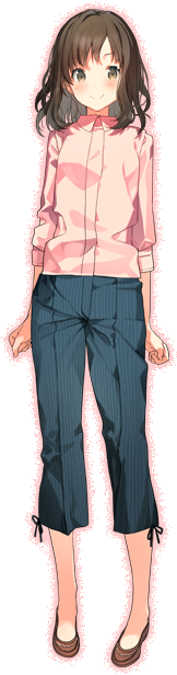 At first glance she may seem lazy, but she is actually an all-rounder who can play both the funny man and the straight man. Since she only tends to say half-hearted things with a serious look on her face, those around her are often under her thumb. However, she is a no frills girl who acts the same around everyone, so things like that are forgiven.
