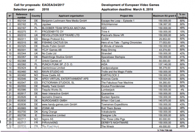 A document from the European Commission has outed several unannounced titles. Trine 4 and Earthlock 2 are among the projects listed, along with upcoming titles from companies like Zoink games.