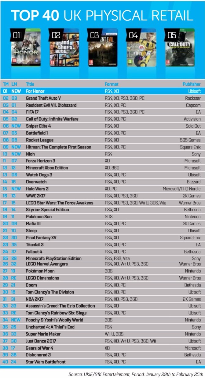The latest issue of MCV has a listing of the best-selling games in the UK for the month of February. The results are posted below, based on data collected between January 29 and February 25.