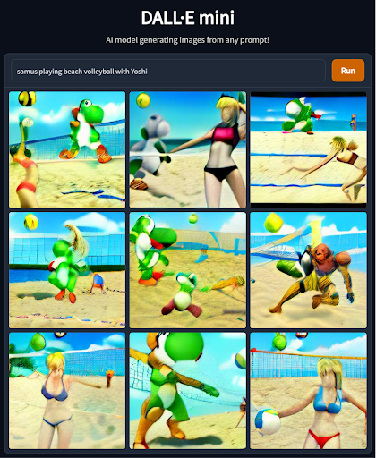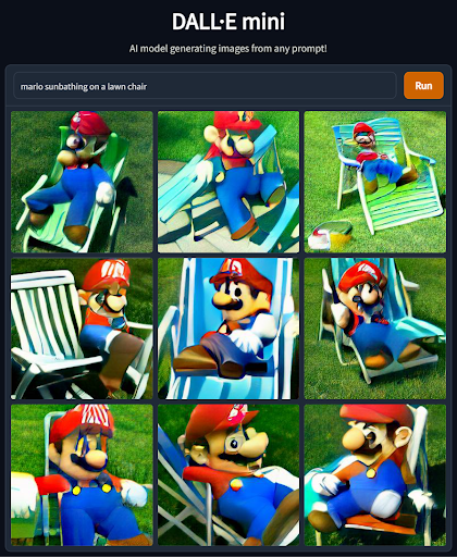 We started with the basic prompt of: “Super Smash Bros. characters at a summer cookout,” and used our own theories based on these characters’ personalities to envision what they’d be doing. Then, we brought our ideas to life using the friendly AI-Generator – the Dall-E Mini. The results of this little experiment are below, and we hope that it inspires all of you to make your own summer renders of Nintendo characters. Note that we used iconic Nintendo characters because it’s easier to get a relevant result out of the Dall-E Mini.