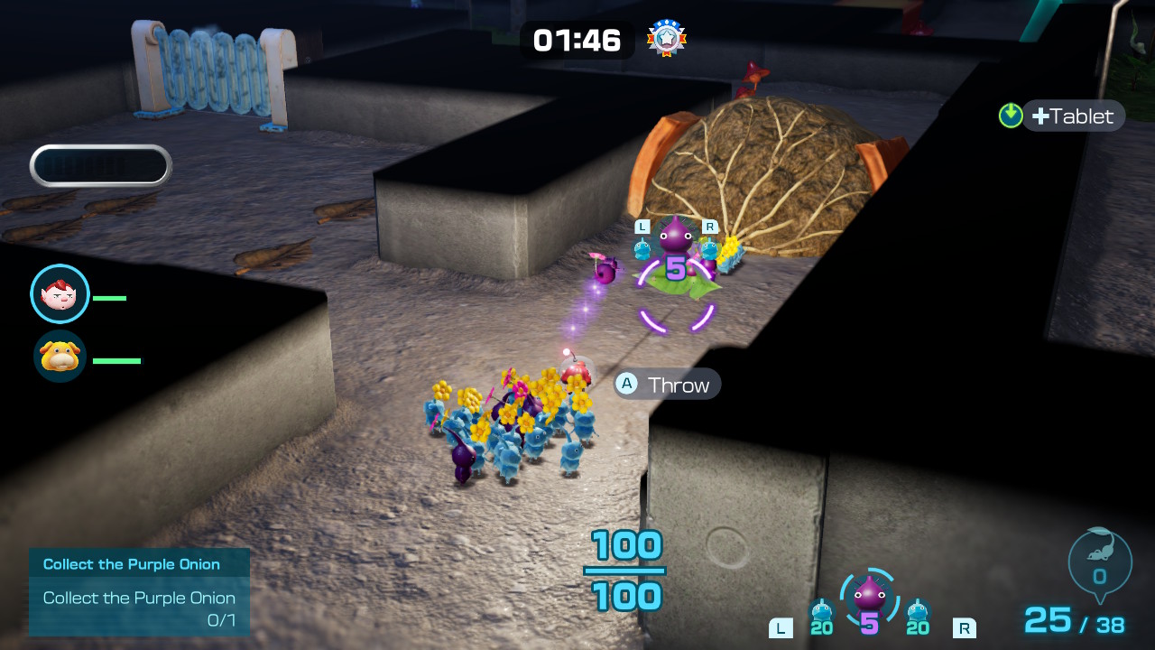 Like White Pikmin, Purple Pikmin are extremely rare, and you may not have found them at all during your explorations in the main story, as they are found in only a handful of optional caves. To get the Purple Onion and add them to your selection of Pikmin, you will first need to complete both the main story and the postgame story “Olimar’s Shipwreck Tale”, which you can do by talking to Captain Olimar at your base.