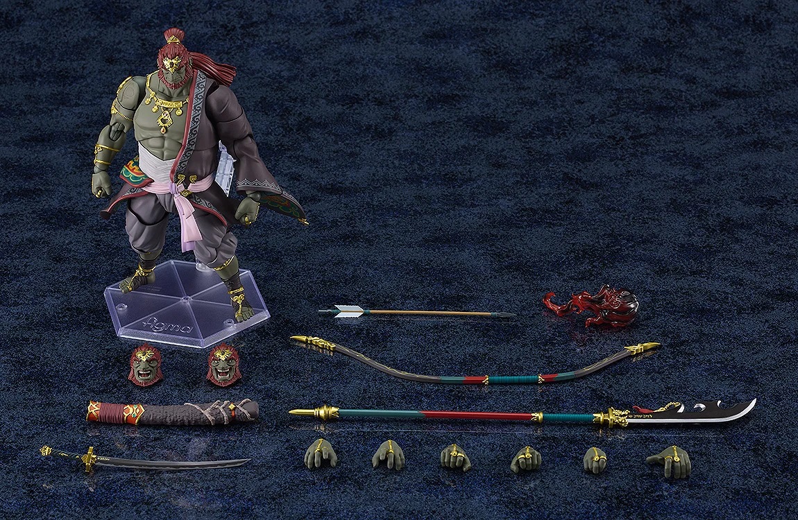 Ganondorf comes with the standard face, shouting face, and goading face. Optional parts include the Gloom Sword, · Scabbard, Gloom Spear, Demon King’s Bow, Gloom effect part, arrow, and more for different poses. You’ll also get a stand to easily prop up and display the figma. The whole thing comes in at 190mm, or 7.48 inches.